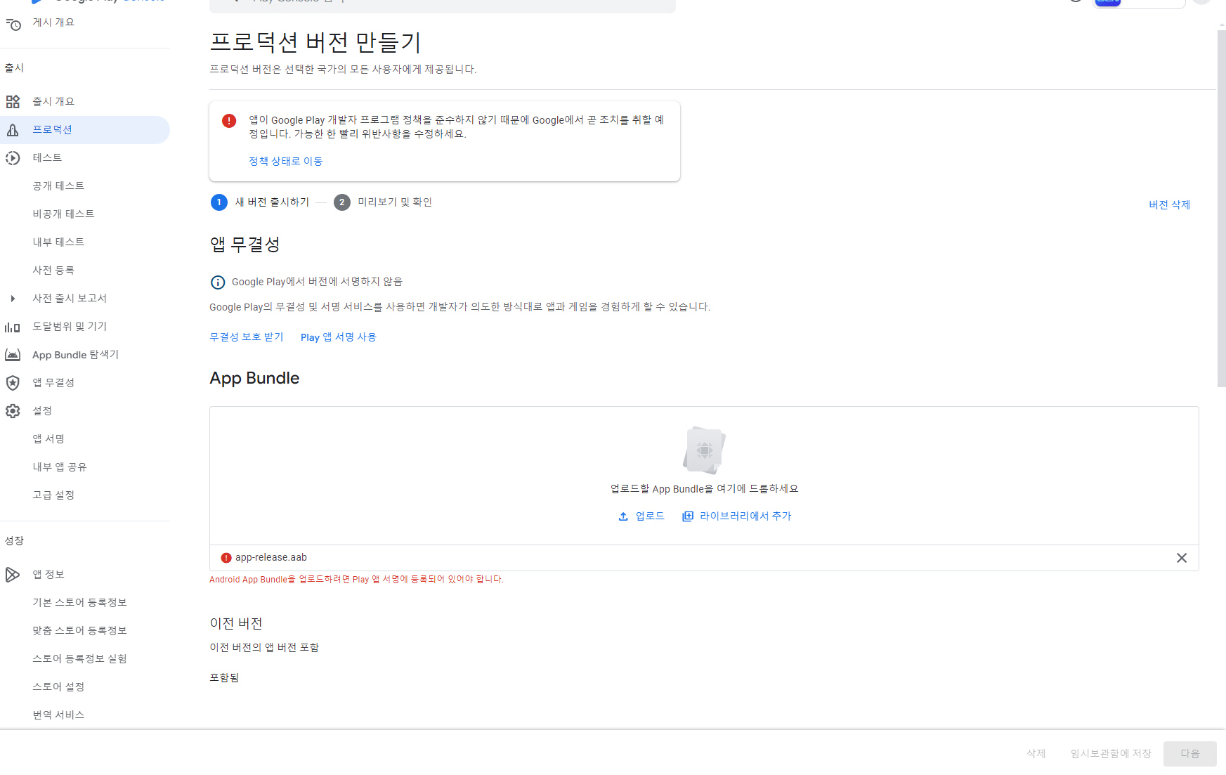 안드로이드 앱 키 저장소 사용할 수 없을 경우